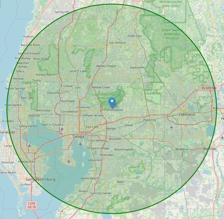 Brindamos servicios en los condados de Hillsborough, Pasco y Pinellas, ofreciendo atención rápida, confiable y garantizada en toda el área de la Bahía de Tampa.